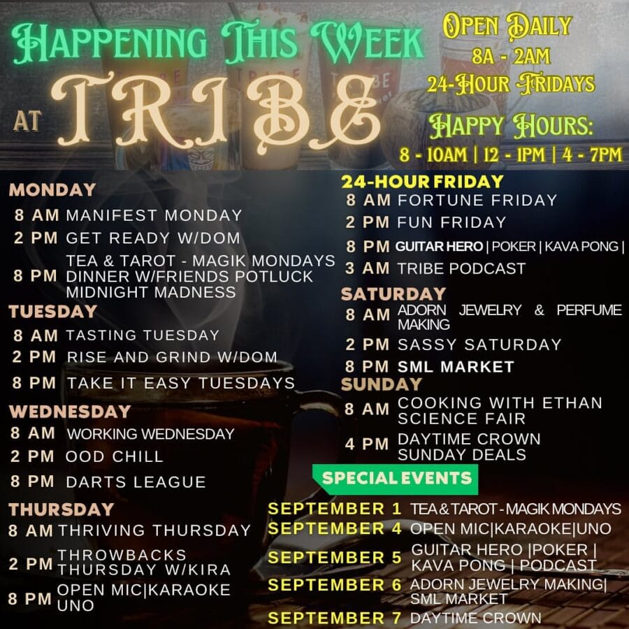 From sunrise rituals to late-night vibes, Tribe is the place to gather, connect, and create memories. Join us daily for community, creativity, and fun! โจ Weekly Lineup: Monday: Manifest Monday, Tea & Tarot, Dinner Potluck, Midnight Madness Tuesday: Tasting Tuesday, Rise & Grind, Take It Easy Tuesdays Wednesday: Working Wednesday, Chill Sessions, Darts League Thursday: […]